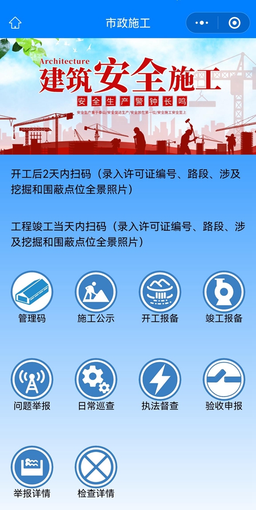 一是实现“一码”统管。围绕建立挖掘城市道路施工监督“一码通”多方参与机制,实现审批时赋二维码、审批后执法监管人员监管信息上报、施工方施工及竣工现场管理信息申报、社会监督信息举报等,均可通过“一码”实现简易“打卡式”填报,推动各方监管信息汇聚、贯通协调、同向发力,强化审管精细化和高效化联动。
