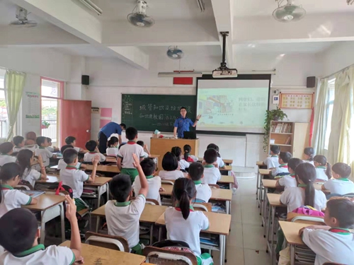 课堂上,讲课人员以最贴近小学生日常生活的“城市管理知识”和“生活垃圾分类”为两大主题,通过幽默风趣的讲座、观看视频、有奖问答和发放宣传资料等形式,让同学了解城管工作职能、相关法律法规、“十不”行为、垃圾分类、扫黑除恶等方面的知识,引导学生从小树立文明意识、公德意识。同学们都表现出对城市管理和垃圾分类的极大兴趣和支持,表示今后不仅会时刻注意自己的行为,还会教育劝导其他同学和家长的不文明行为。港口中心小学共40多名学生参加了活动。